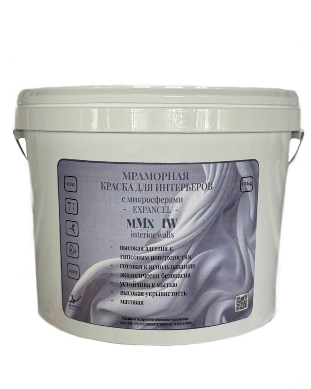 СОСТАВ: полимерная акриловая дисперсия, вода, белый пигмент — диоксид титана, микросферы, вспомогательные вещества. Соответствует европейским экологическим нормам по содержанию ЛОС.